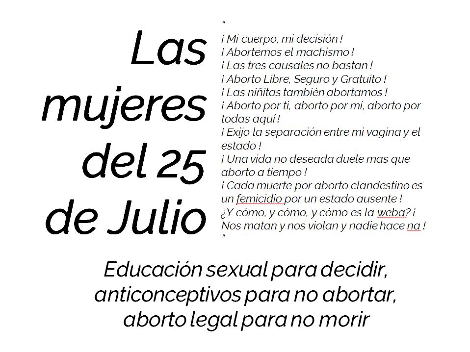Le 25 Juillet est la jour de la manifestation pour la légalisation de l’avortement au Chili. Actuellement, on estime entre 30.000 et 80.000 avortements illégaux par an dans ce pays. Malgré l’interdiction, de nombreuses femmes pratiquent l’avortement clandestin aux risques de leur vie.